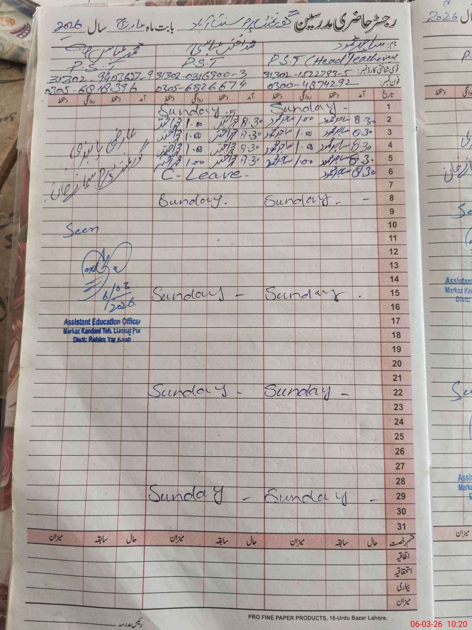| Name: Sa**** Me**** Designation: (School Headmaster's/Headmistress's) PST Phone/Cell Number: 03**** |