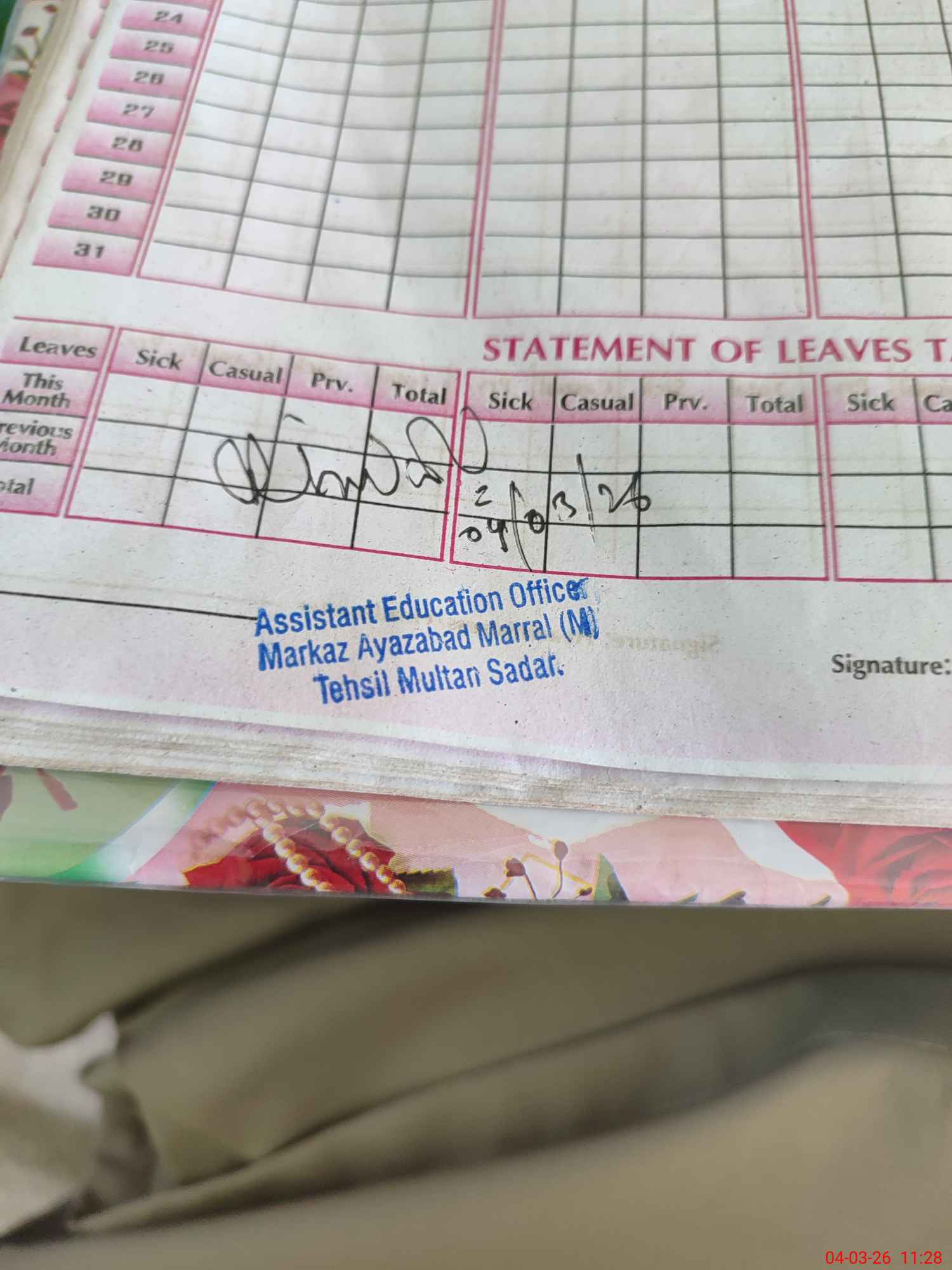 | Leave | Duty | Absent | Maternity | Medical | Ex- Pak |