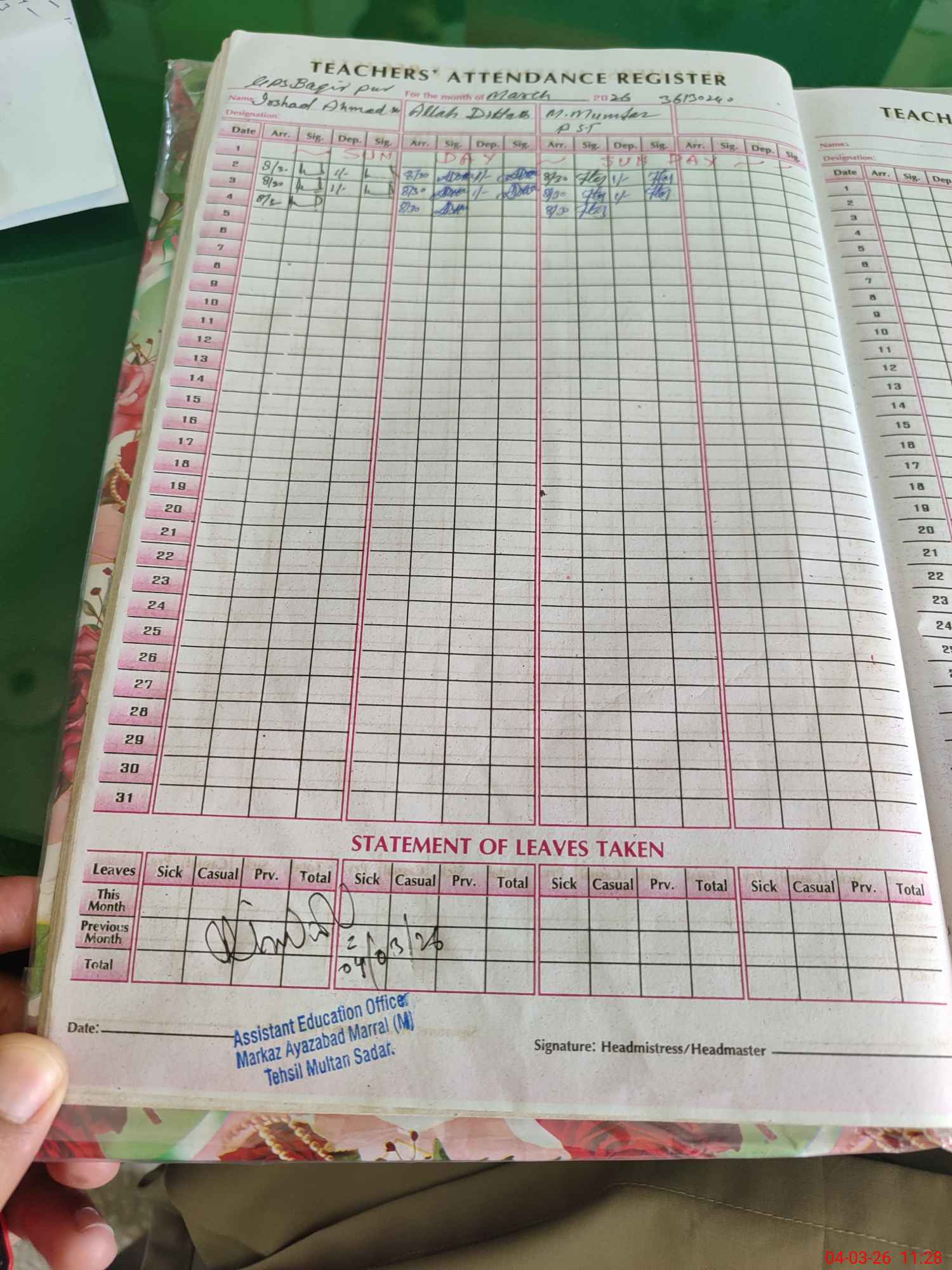 | Name: MU**** QA**** Designation: (School Headmaster's/Headmistress's) HEADMASTER Phone/Cell Number: 03**** |