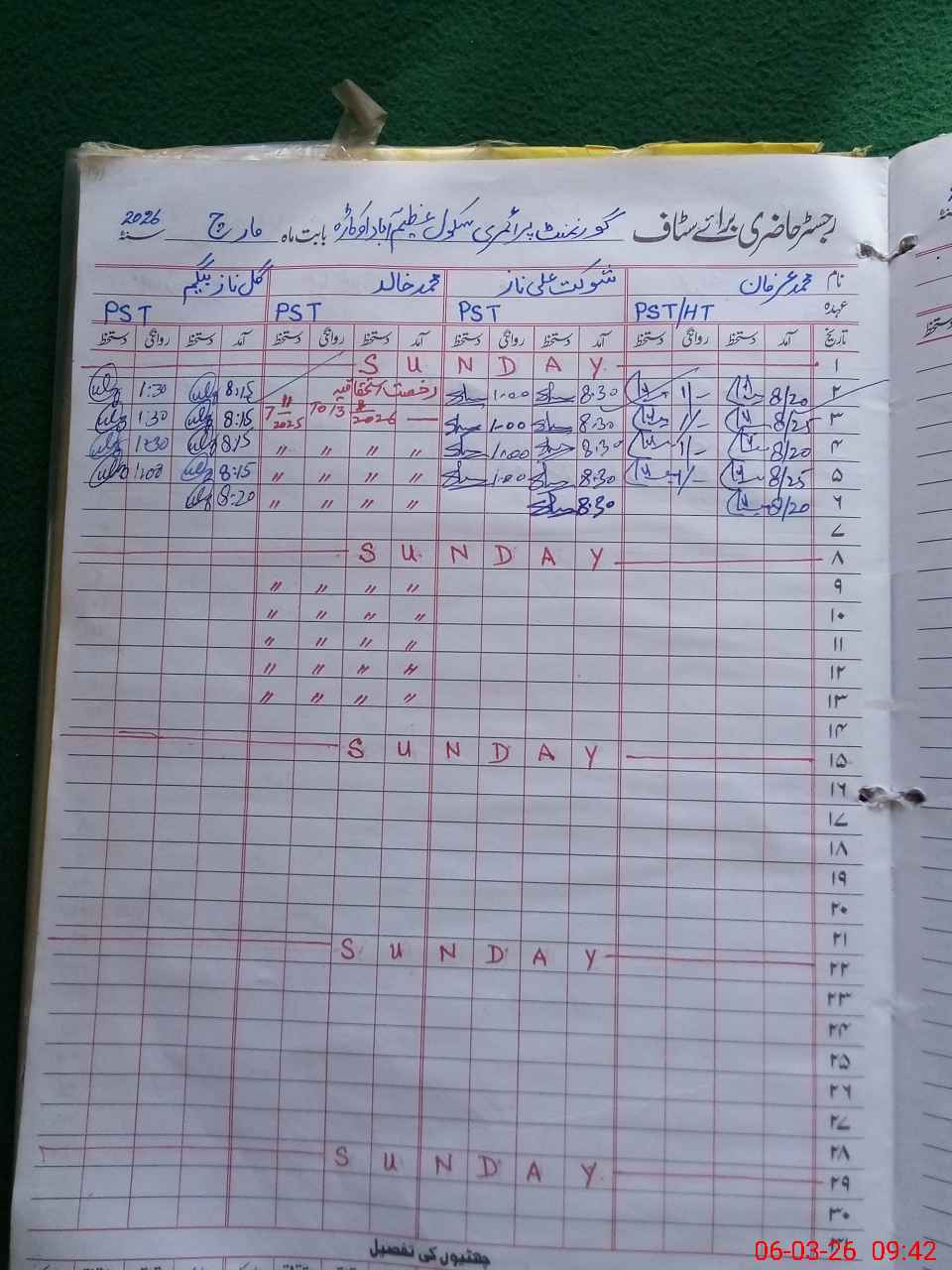 | Name: Mu**** Ir**** Designation: (School Headmaster's/Headmistress's) PST Phone/Cell Number: 03**** |