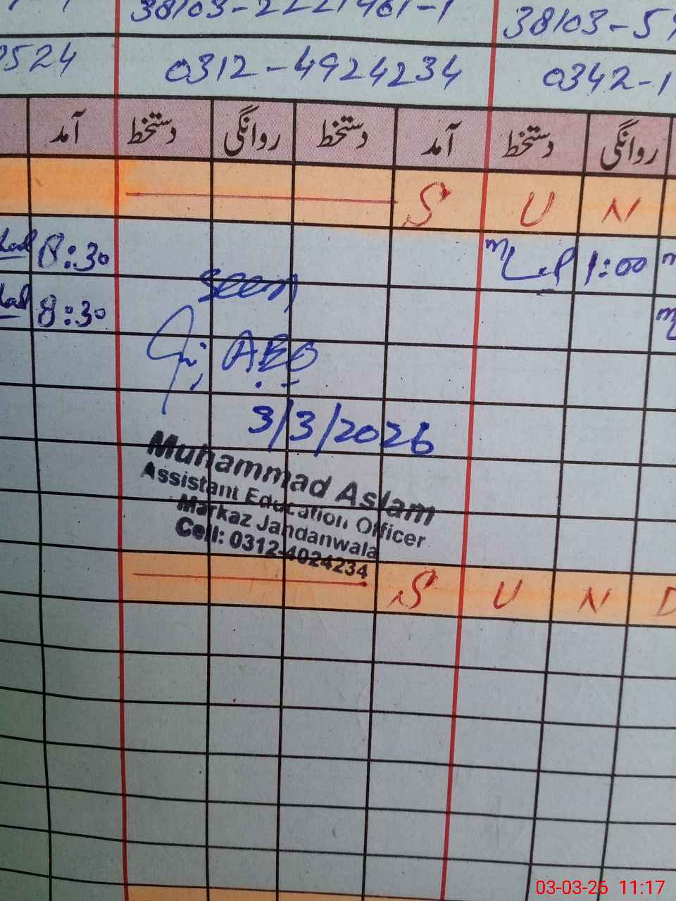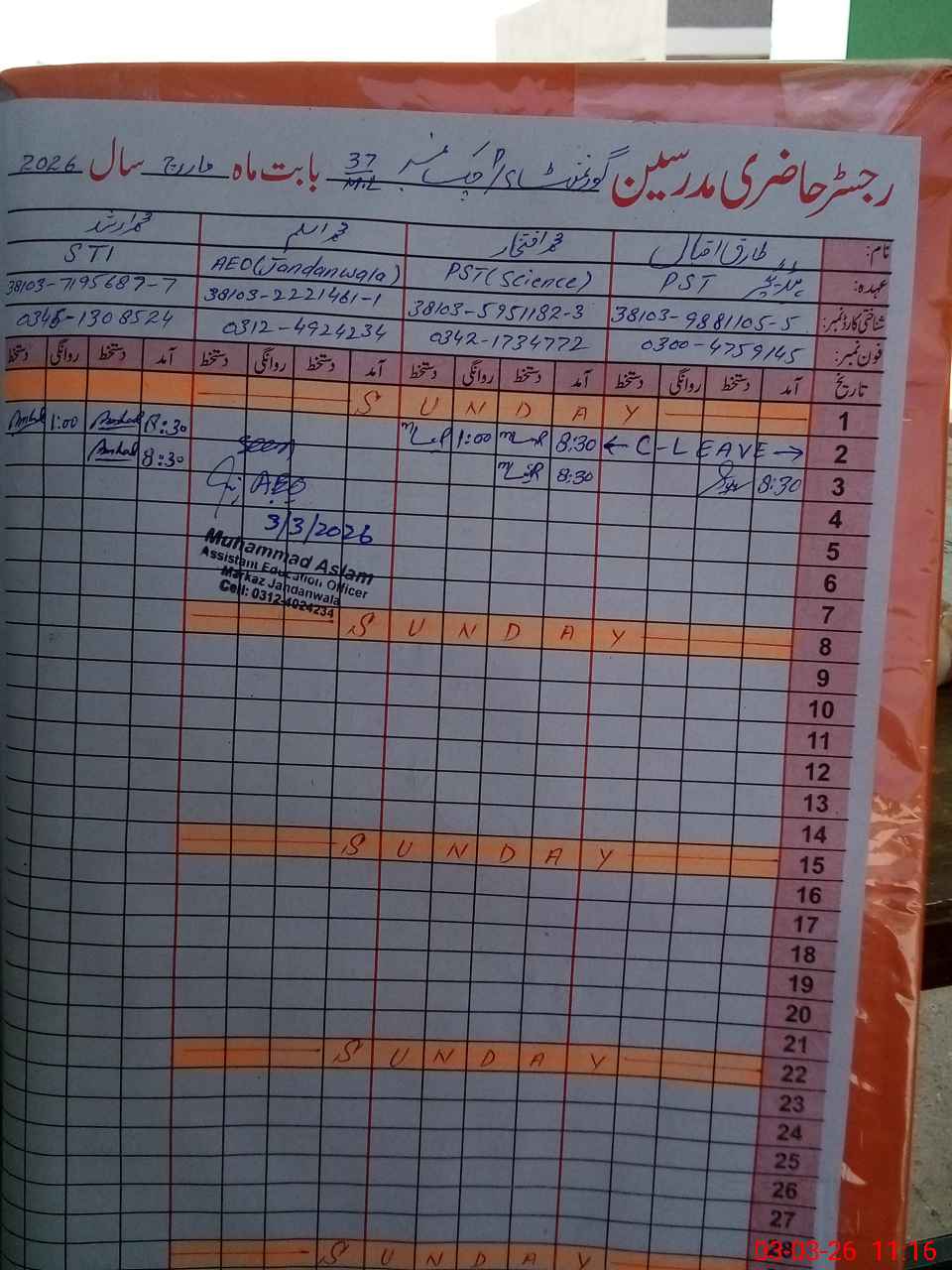 | EMIS Code: 38120413 | Name of School: GPS CHAK NO 37 ML | |||