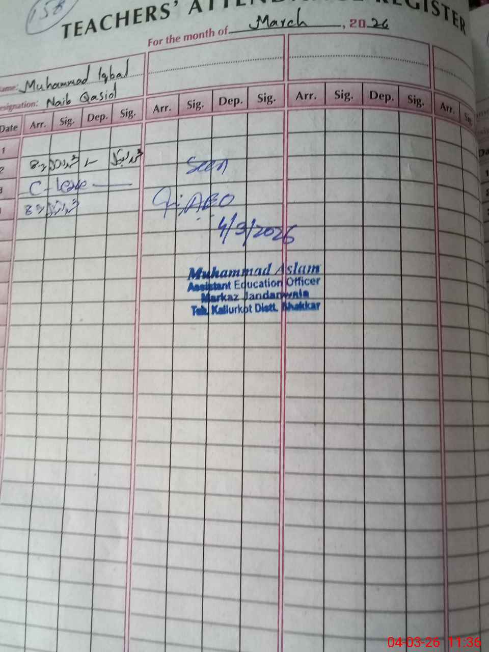| Name: Mu**** Ri**** Designation: (School Headmaster's/Headmistress's) ES.T.(English Phone/Cell Number: 03**** |