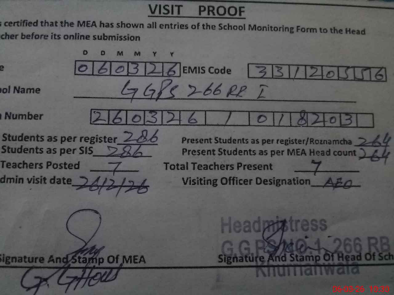 | EMIS Code: 33120556 | Name of School: GGPS CHAK 266 RB I GHOSIA COLONY KHURRIANWALA | |||