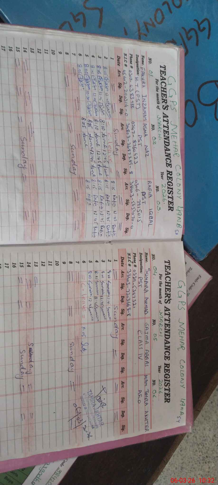 | EMIS Code: 38420583 | Name of School: GGPS MEHAR COLONY SARGODHA | |||
