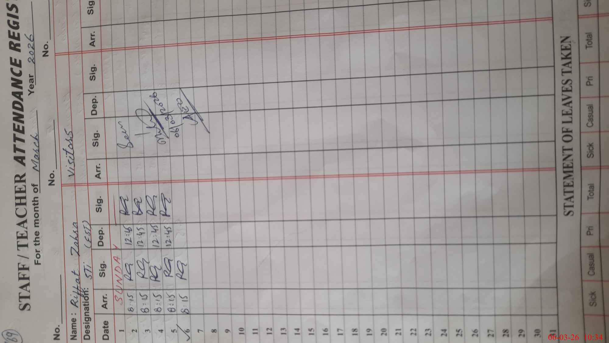 | Sr.No. | Visit Date | Designation | ||