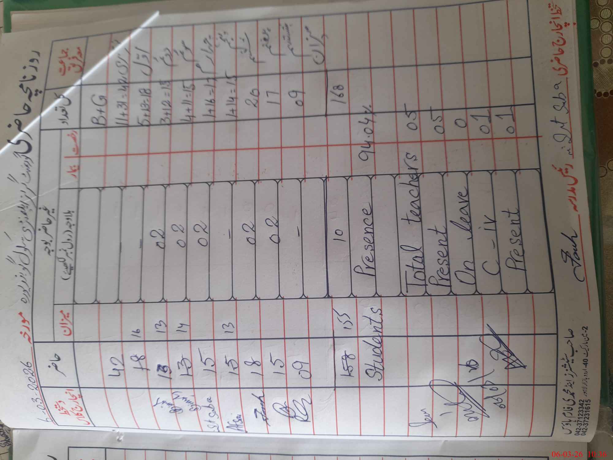 | Total Students Present | 0 | 0 | 16 | 13 | 14 | 15 | 13 | 18 | 15 | 9 | 155 | |||||