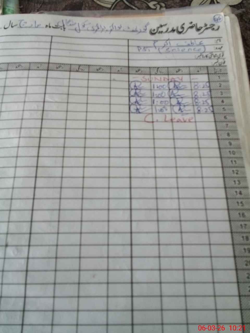 | Name: At**** Ak**** Designation: (School Headmaster's/Headmistress's) PST Phone/Cell Number: 03**** |