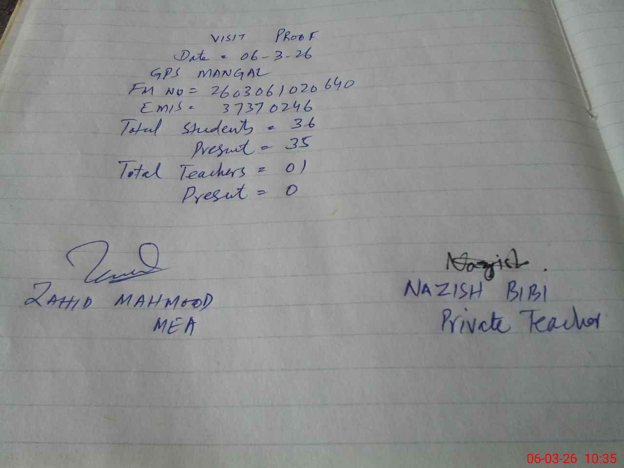 | EMIS Code: 37370246 | Name of School: GPS MANGAL | |||