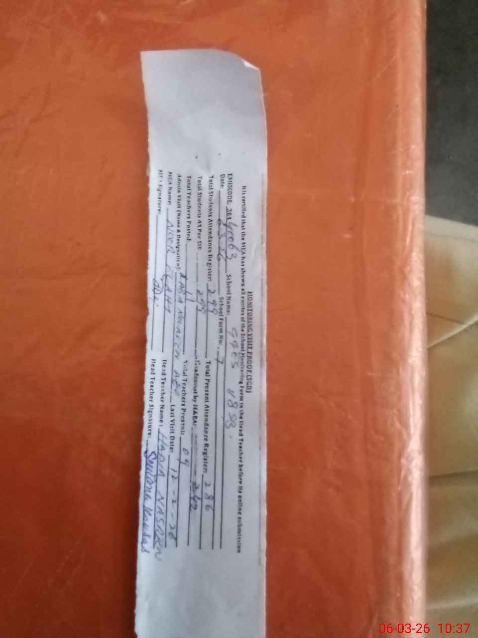 | Attendance Register | Head Teacher | MEA with School | Visit Proof |