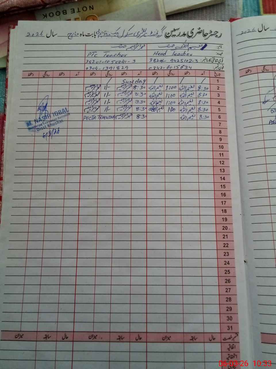 | Name: Mu**** Ak**** Designation: (School Headmaster's/Headmistress's) PST Phone/Cell Number: 03**** |