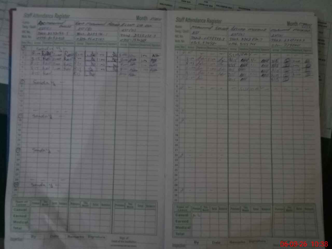 | CNIC | Full Name | Designation | R/C | Absence During Last Calender Month |