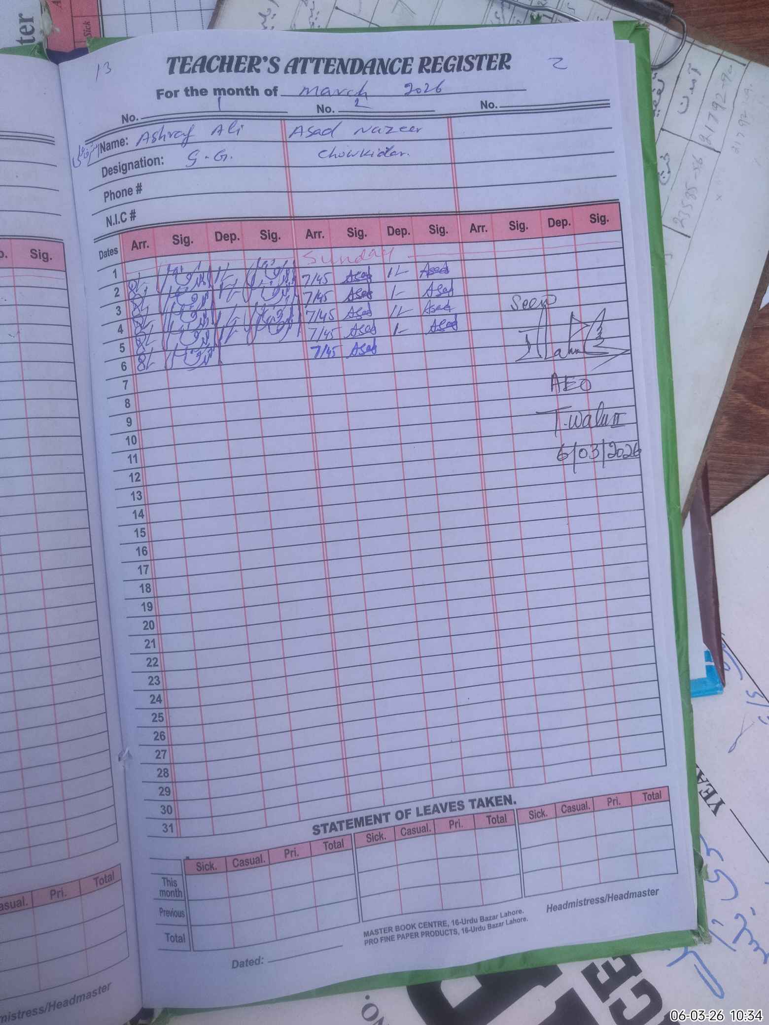 | Name: ZU**** AL**** Designation: (School Headmaster's/Headmistress's) SST (GENERAL ) Phone/Cell Number: 03**** |