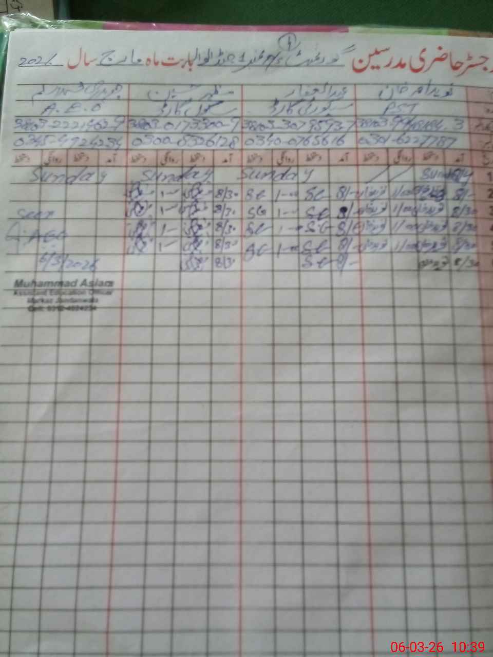 | Name: CH**** DI**** Designation: (School Headmaster's/Headmistress's) PTC/JV Phone/Cell Number: 03**** |