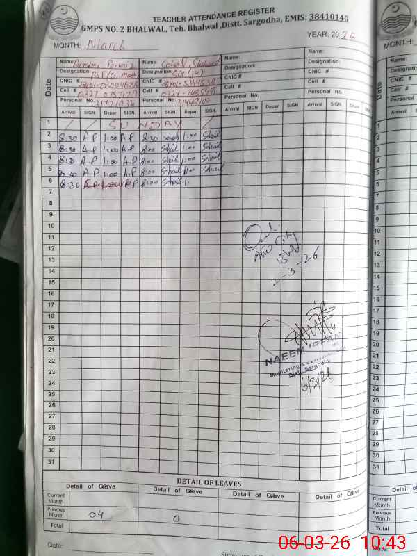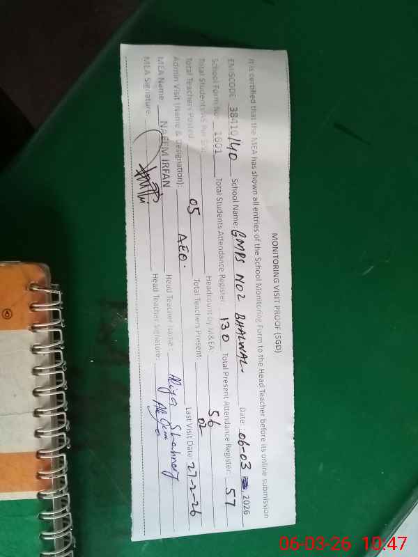 | EMIS Code: 38410140 | Name of School: GMPS NO.2 BHALWAL | |||