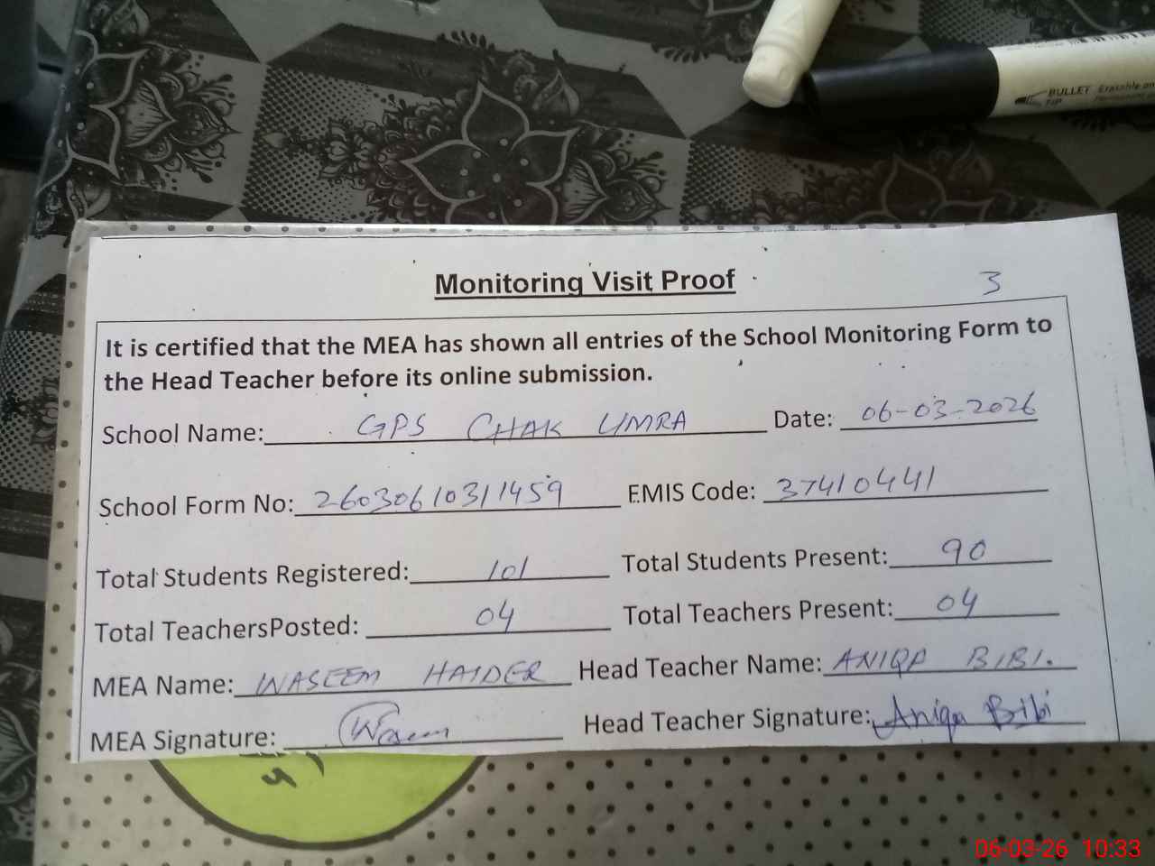 | EMIS Code: 37410441 | Name of School: GPS CHAK UMRA | |||