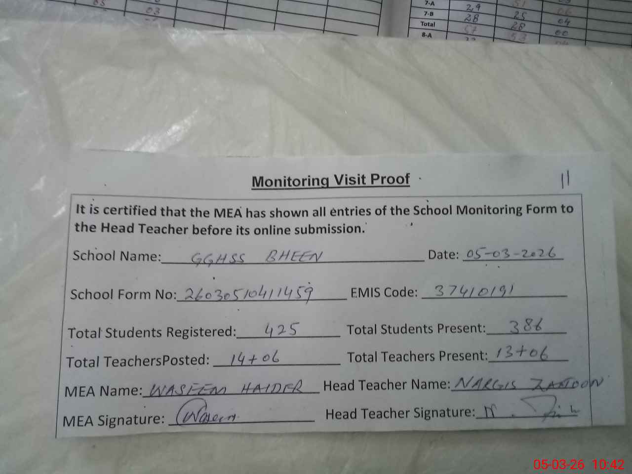 | EMIS Code: 37410191 | Name of School: GGHSS BHEEN | |||