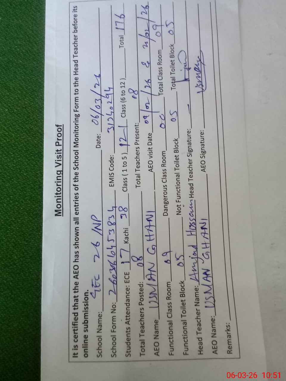 | EMIS Code: 31340294 | Name of School: GES CHAK NO. 26 NP | |||