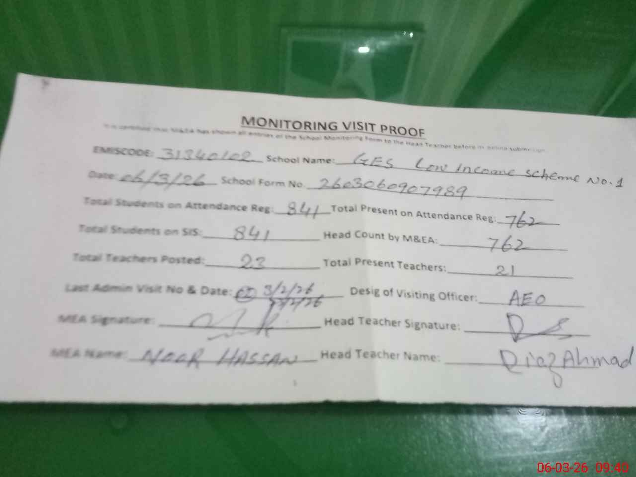 | EMIS Code: 31340102 | Name of School: GES LOW INCOME SCHEME NO. 1 | |||