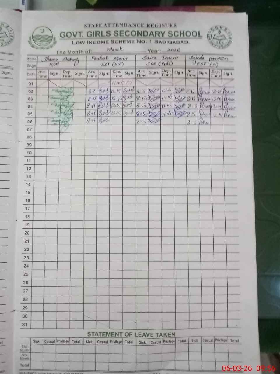 | EMIS Code: 31340392 | Name of School: GGHS LOW INCOME SCHEME NO.1 SETLLITE TOWN | |||
