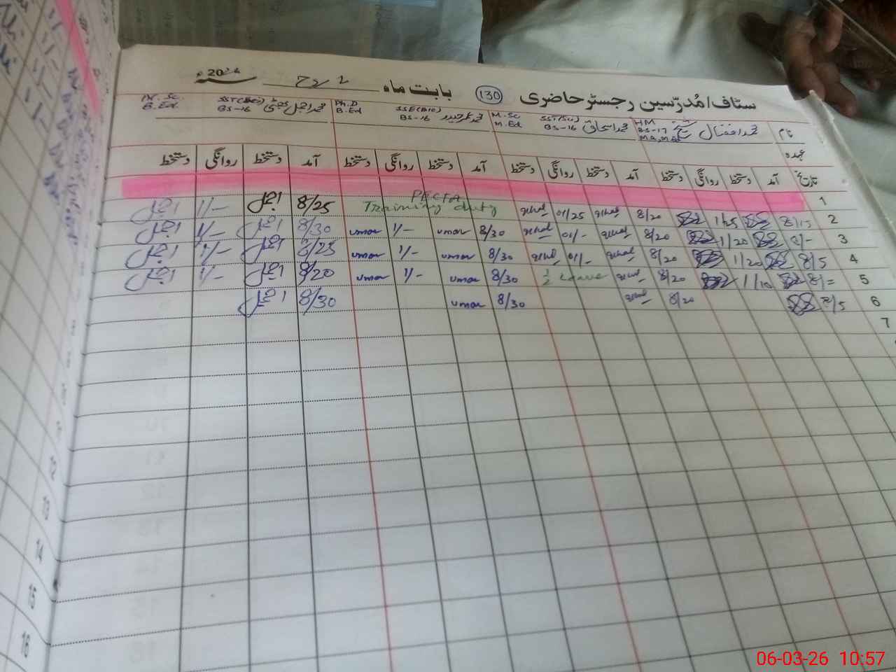 | CNIC | Full Name | Designation | R/C | Absence During Last Calender Month |