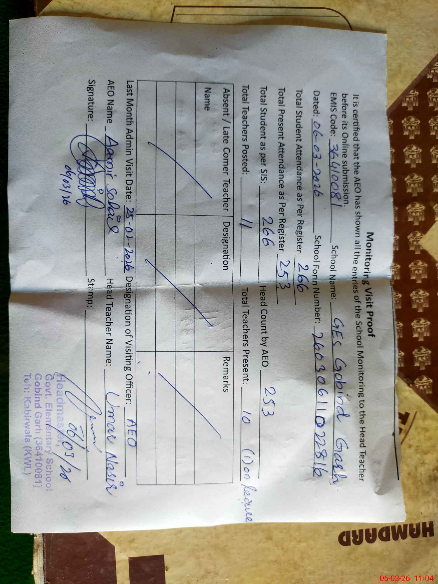| EMIS Code: 36410081 | Name of School: GES GOBIND GARH, ABDUL HAKIM | |||
