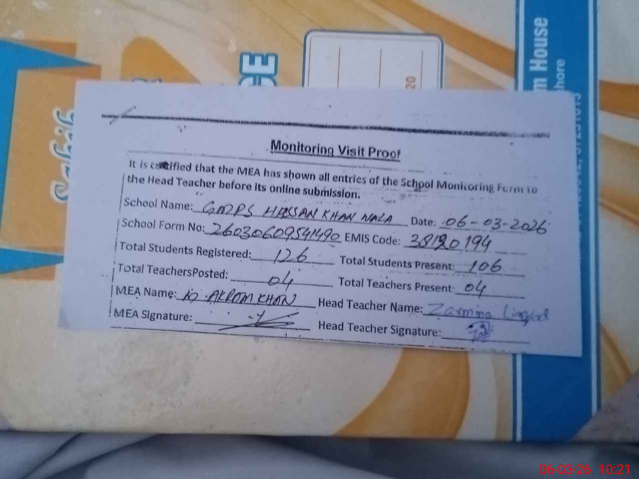 | EMIS Code: 38120194 | Name of School: GMPS HUSSAN KHAN WALA | |||