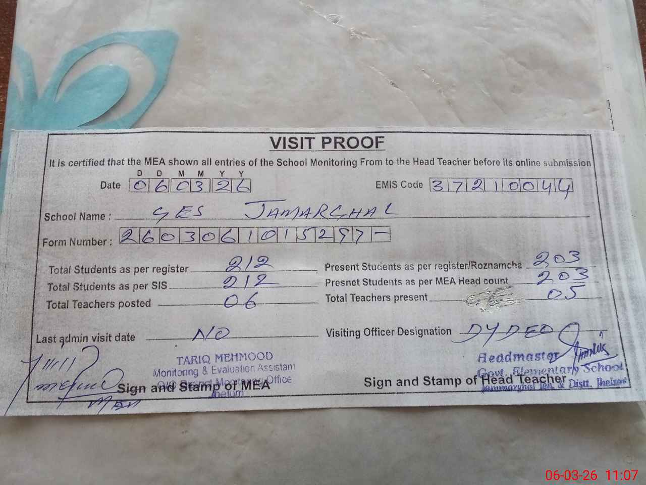 | EMIS Code: 37210044 | Name of School: GES JAMMAR GHAL | |||