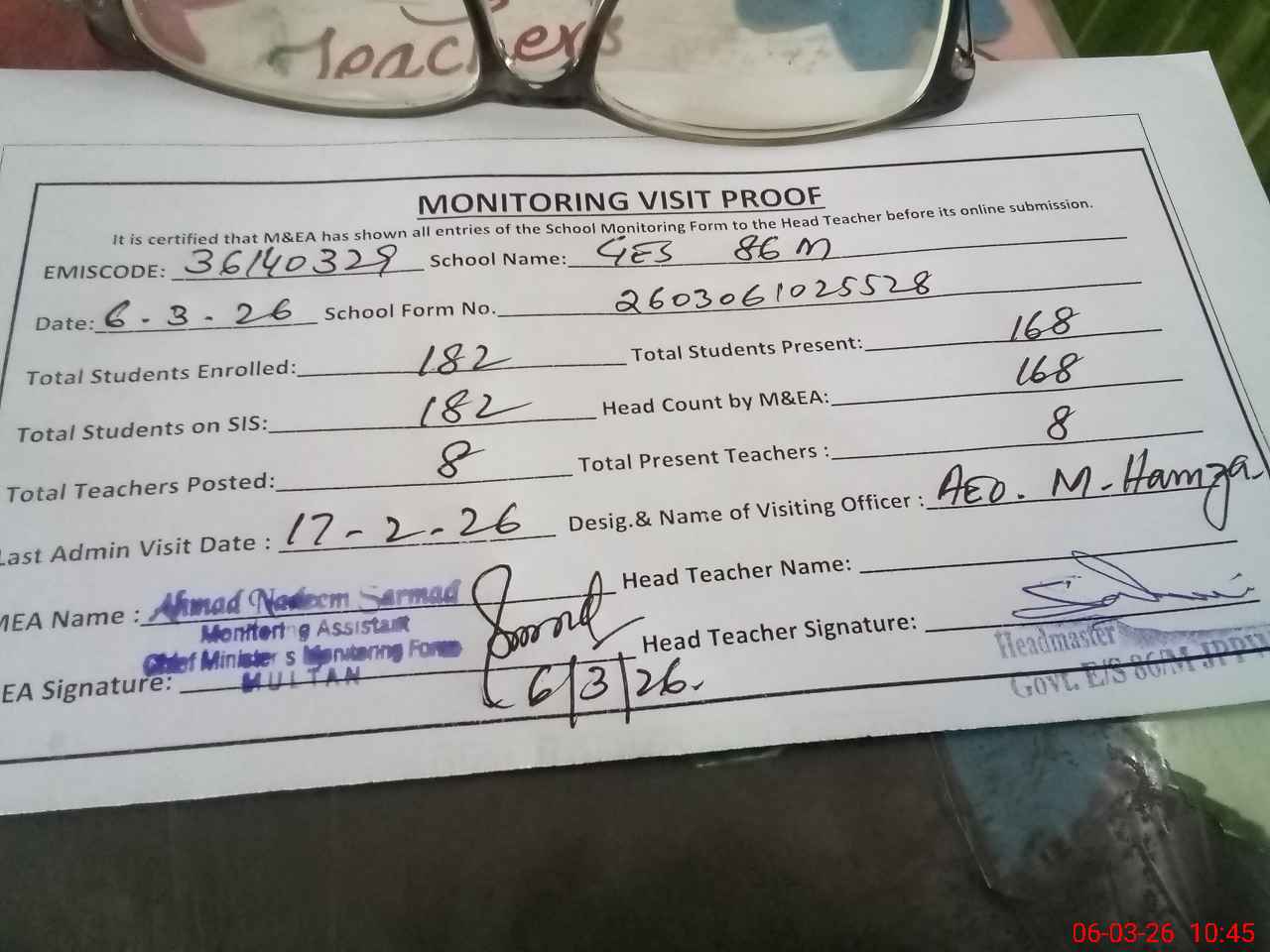 | EMIS Code: 36140329 | Name of School: GES 86/M JALALPUR PIRWALA | |||