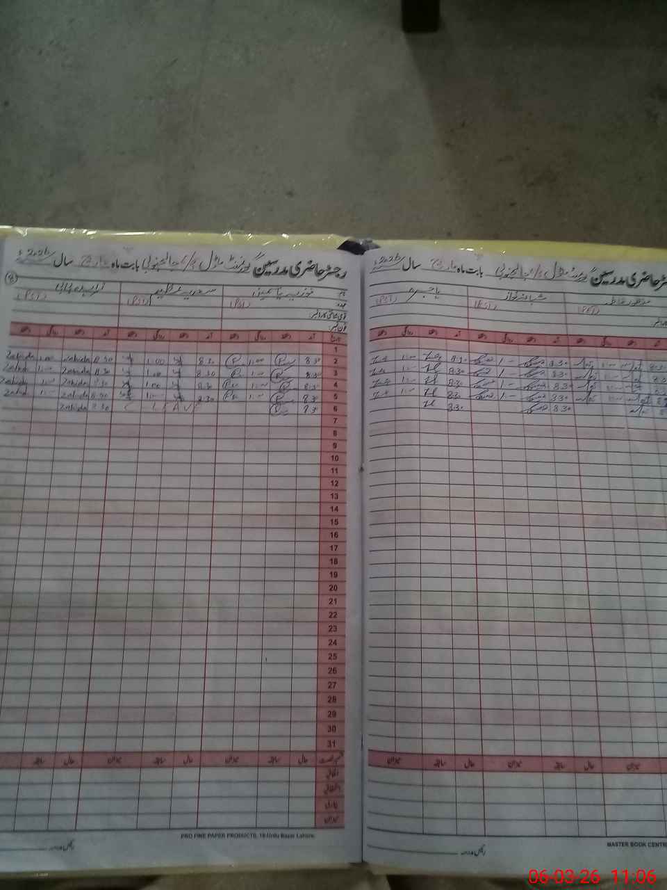 | CNIC | Full Name | Designation | R/C | Absence During Last Calender Month |