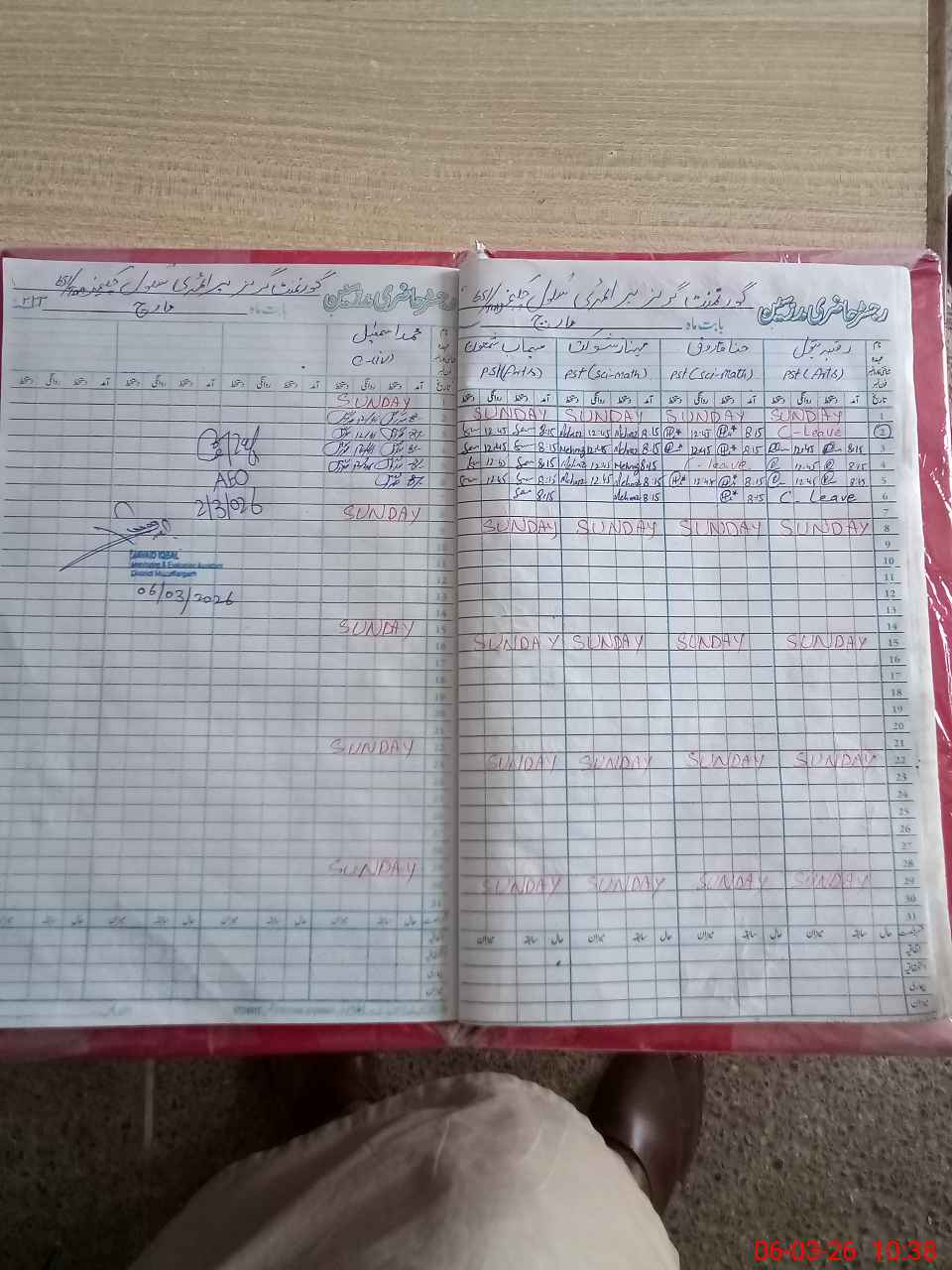 | CNIC | Full Name | Designation | R/C | Absence During Last Calender Month |