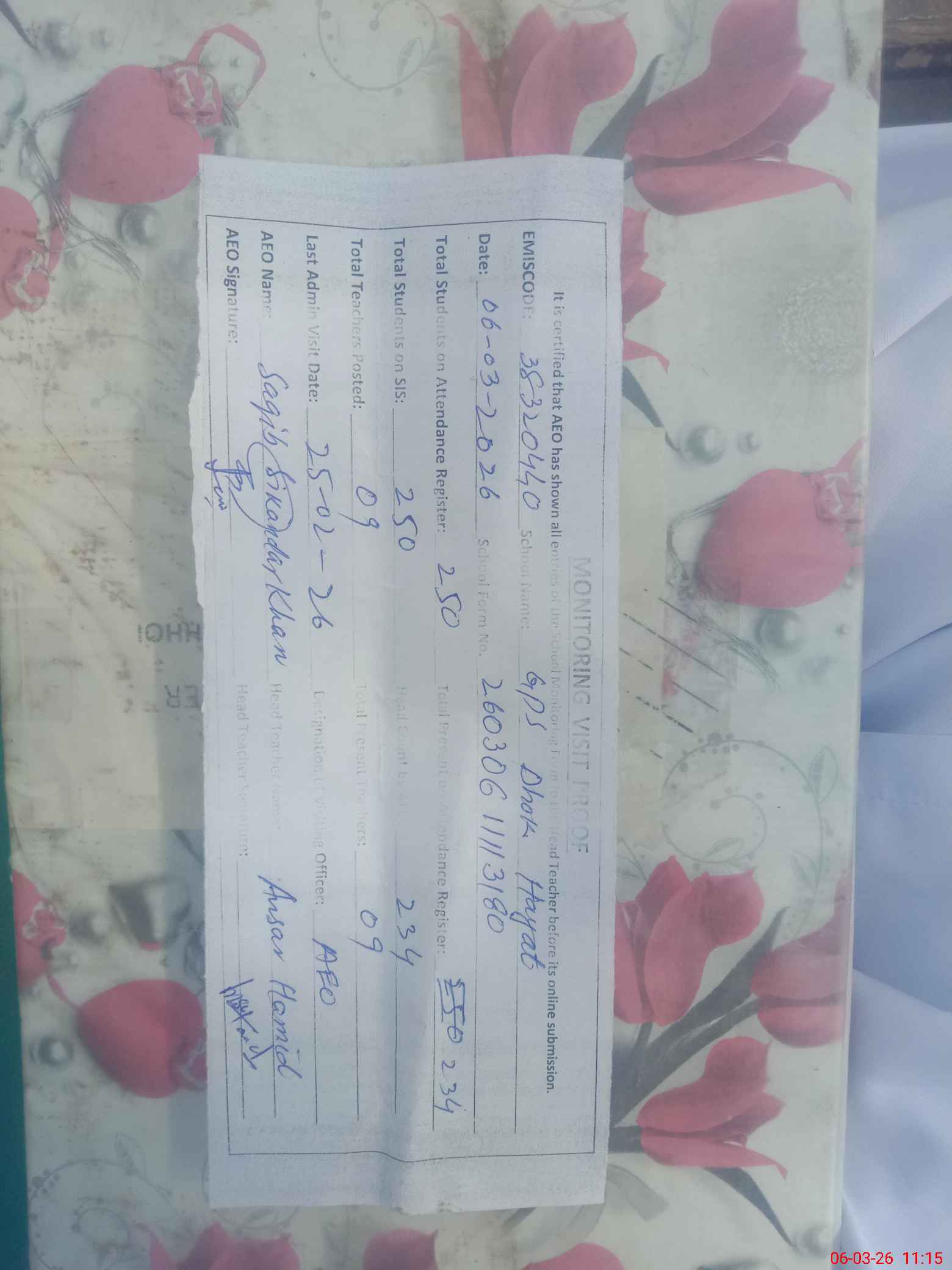 | Certified that this School was Inspected by the Undersigned MEA/DMO Today and the Information Stated Above is as Per Record. | |||||