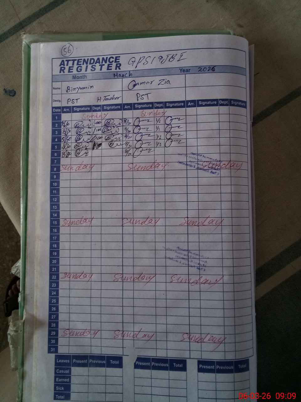 | Name: BI**** YA**** Designation: (School Headmaster's/Headmistress's) PST/PTC/JV Phone/Cell Number: 03**** |