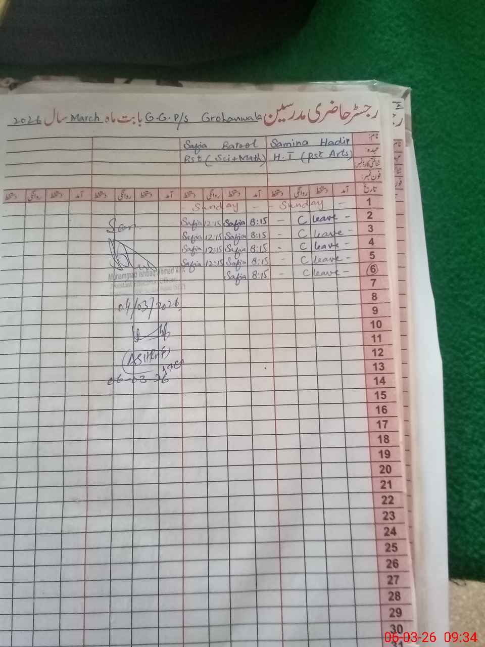 | Name: SA**** HA**** Designation: (School Headmaster's/Headmistress's) ESE (General ) Phone/Cell Number: 03**** |