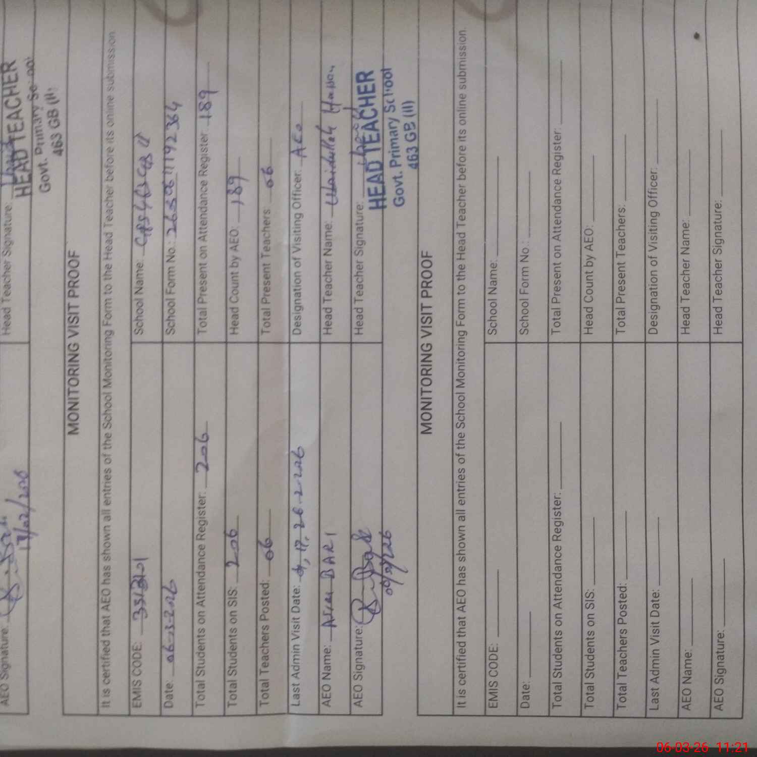 | EMIS Code: 33130101 | Name of School: GPS CHAK 463 GB II SAMUNDRI | |||