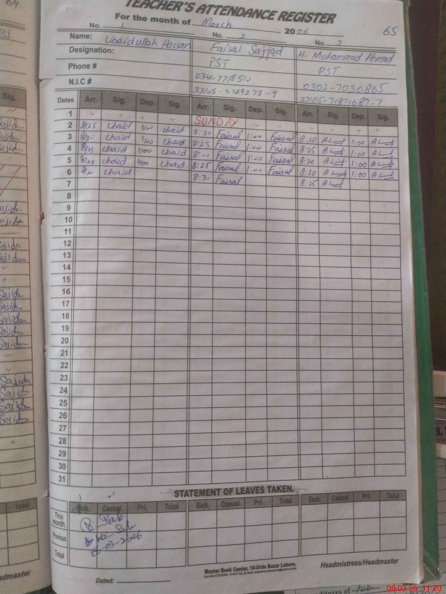 | Name: MU**** Da**** Designation: (School Headmaster's/Headmistress's) PST Phone/Cell Number: 03**** |