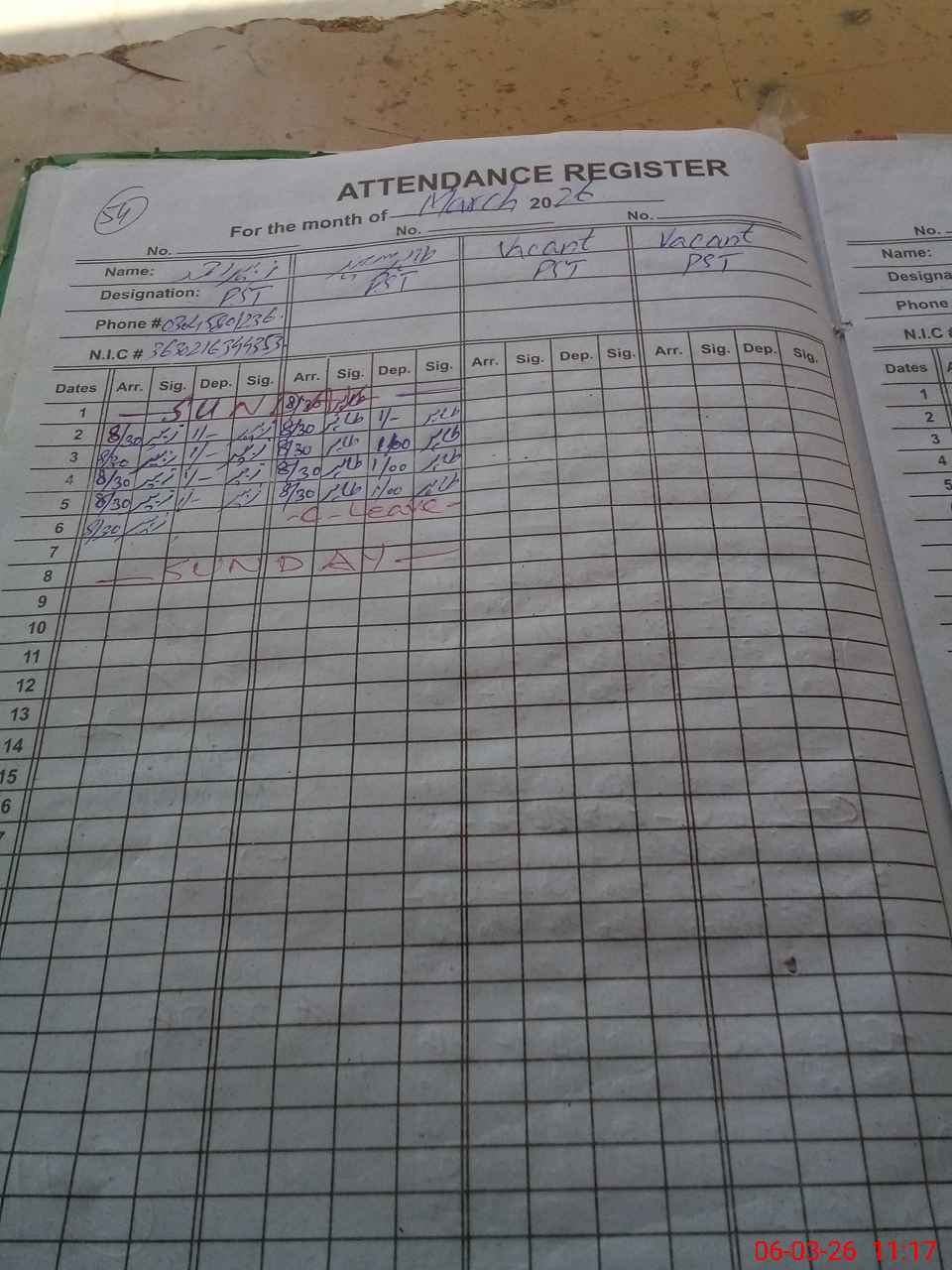 | 32**** | Ta**** Sa**** | PST Science/Maths | Regular | 0 | 0 | 0 | 0 | 0 | 0 | 0 | 0 | 0 | Absent (Un-Authorized) |