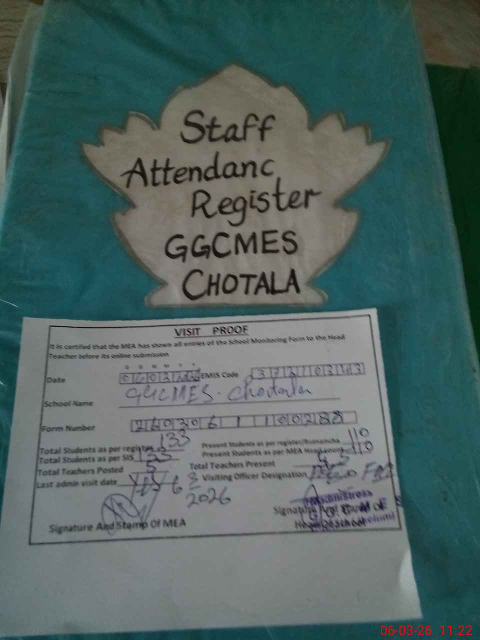 | Attendance Register | Head Teacher | MEA with School | Visit Proof |