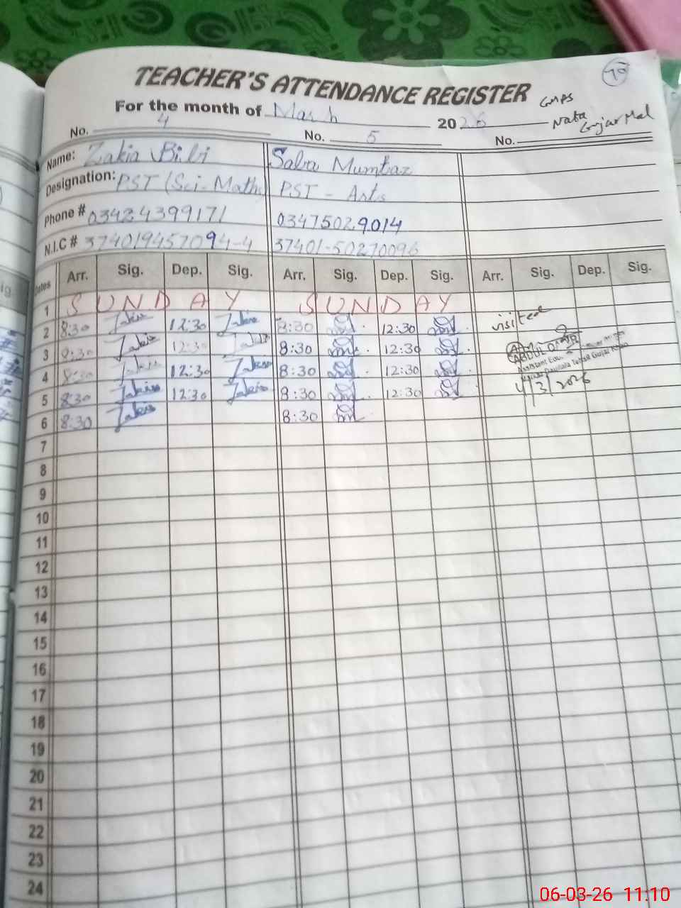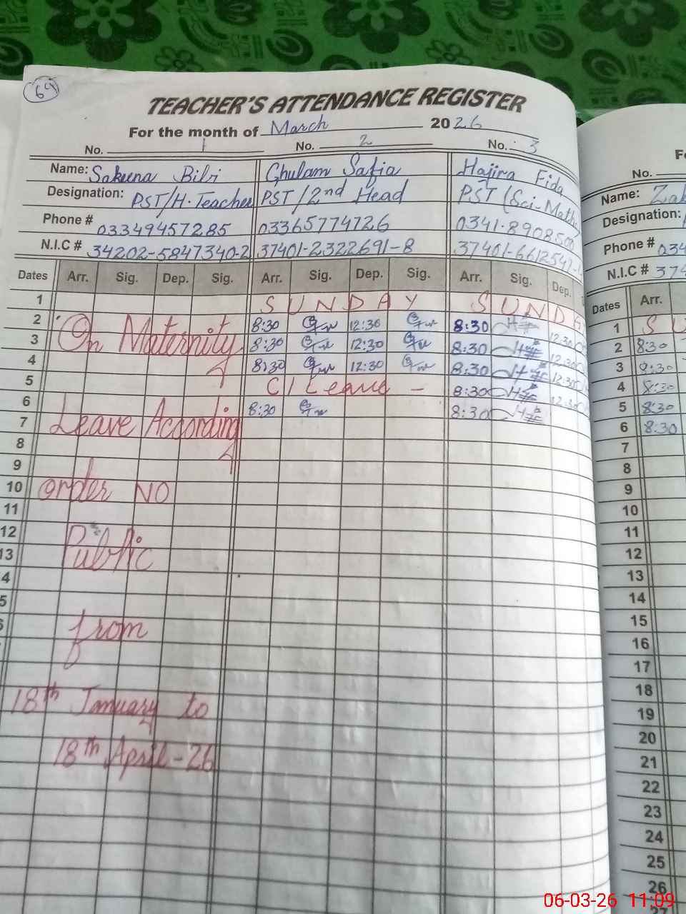 | Name: Sa**** Bi**** Designation: (School Headmaster's/Headmistress's) PST Phone/Cell Number: 03**** |