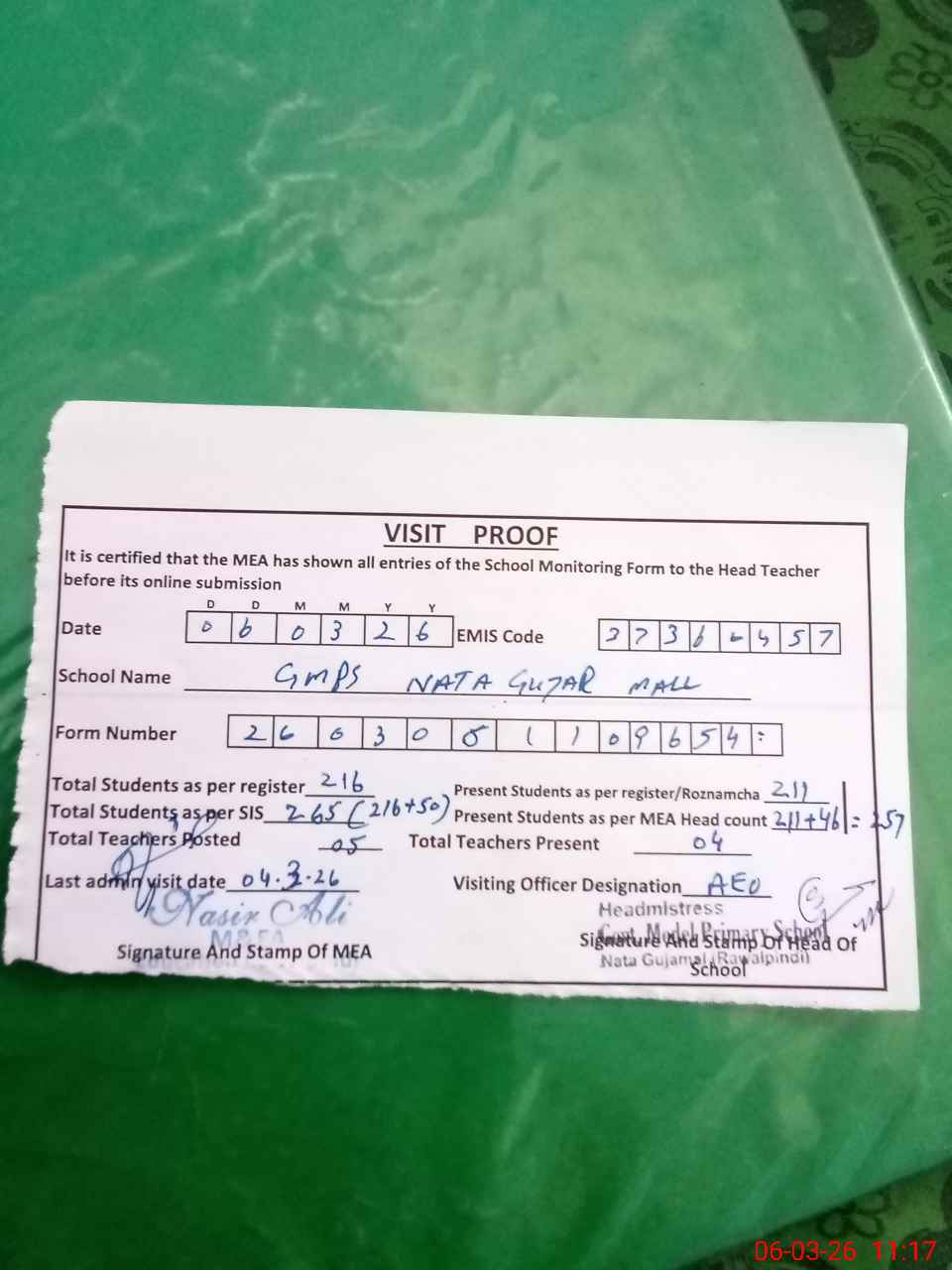 | EMIS Code: 37360457 | Name of School: GMPS NATA GUJAR MALL | |||
