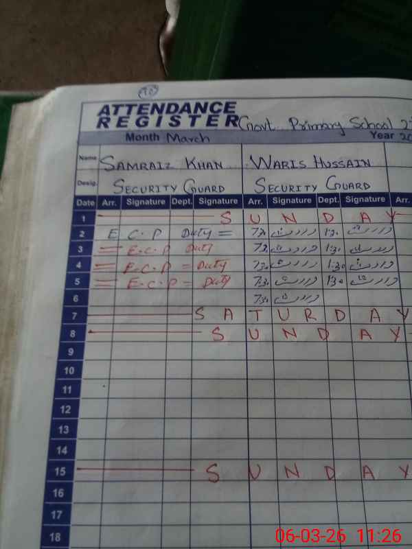 | Attendance Register | Head Teacher | MEA with School | Visit Proof |