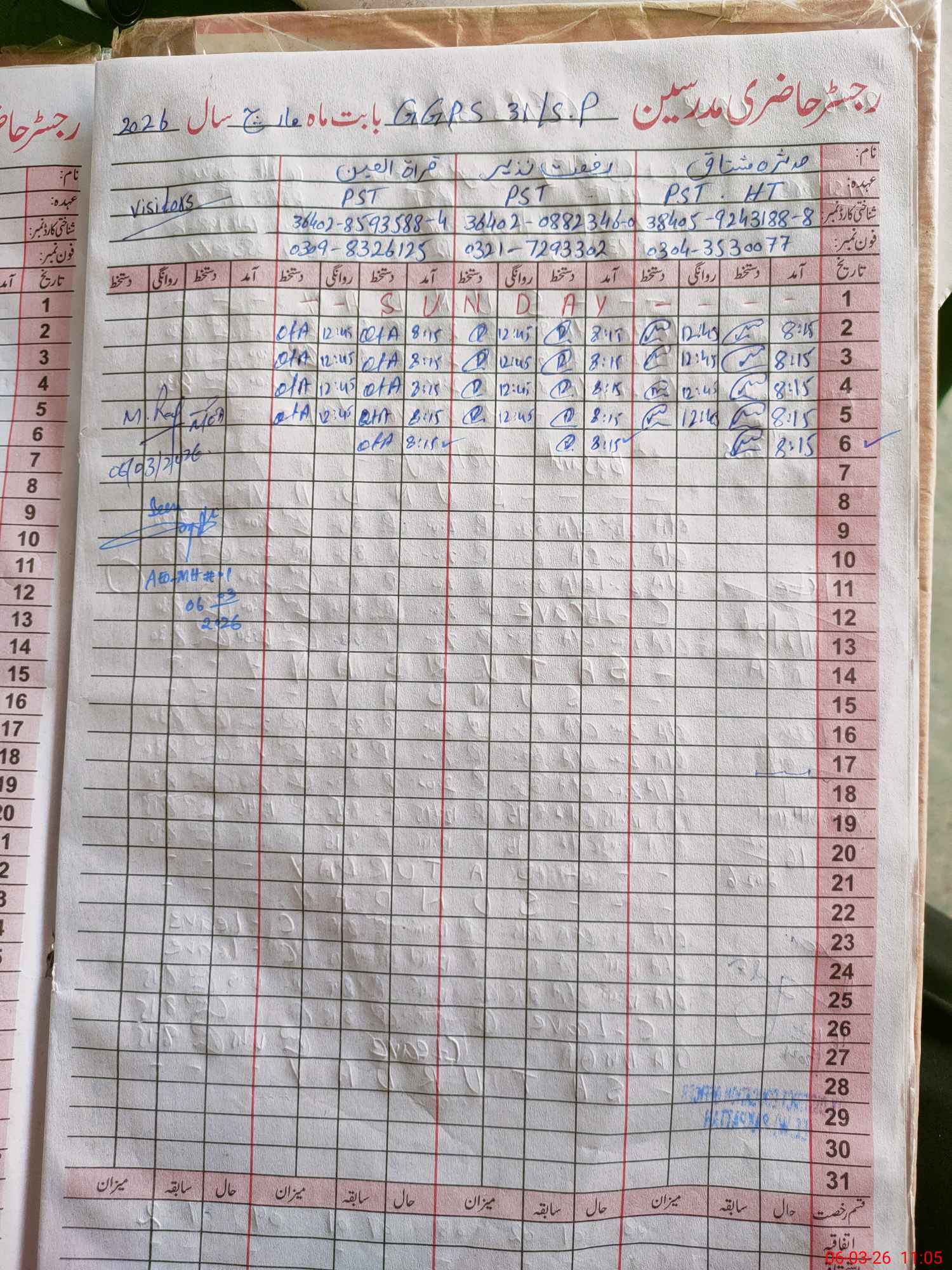 | Name: MU**** MU**** Designation: (School Headmaster's/Headmistress's) PST Phone/Cell Number: 03**** |