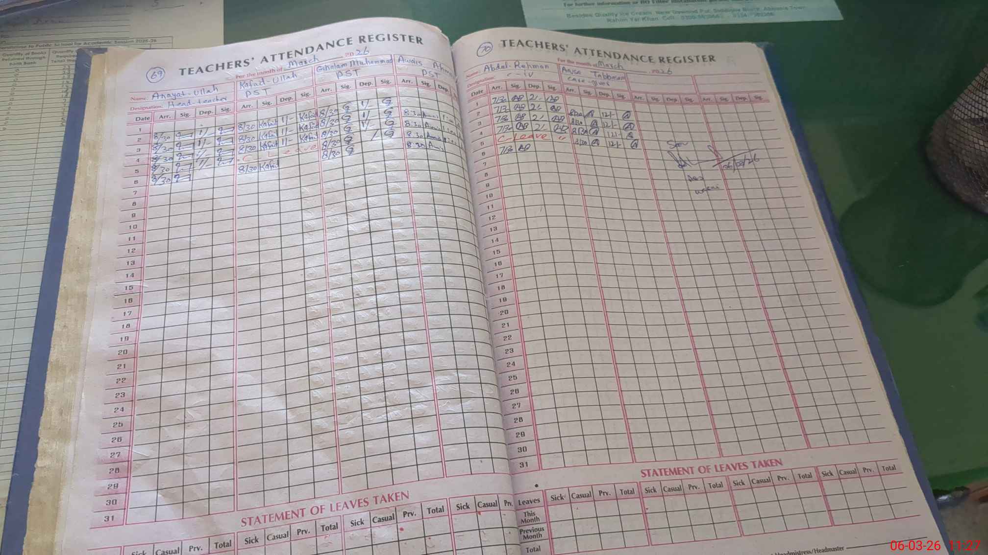 | Name: An**** Ul**** Designation: (School Headmaster's/Headmistress's) PST Phone/Cell Number: 03**** |