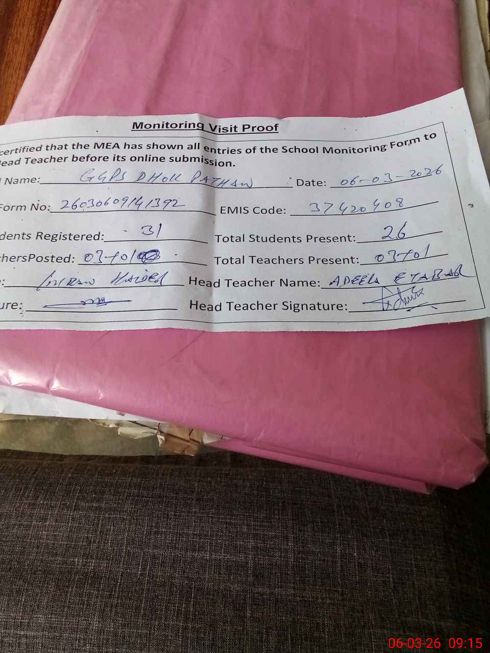 | EMIS Code: 37420408 | Name of School: GGPS DHOK PATHAN | |||
