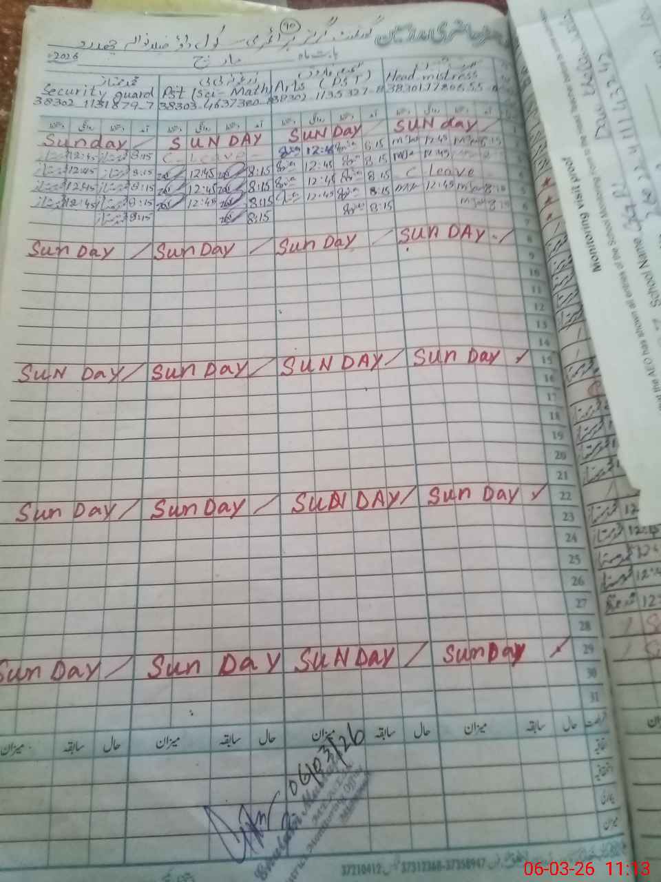 | Name: Mu**** Ja**** Designation: (School Headmaster's/Headmistress's) PST Arts Phone/Cell Number: 03**** |