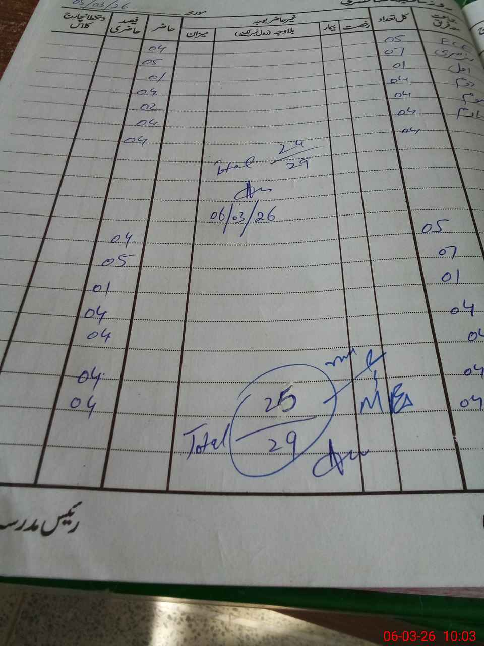 | No. of Students Present - Male | 0 | 4 | 1 | 4 | 3 | 4 | 4 | 25 | ||||||||