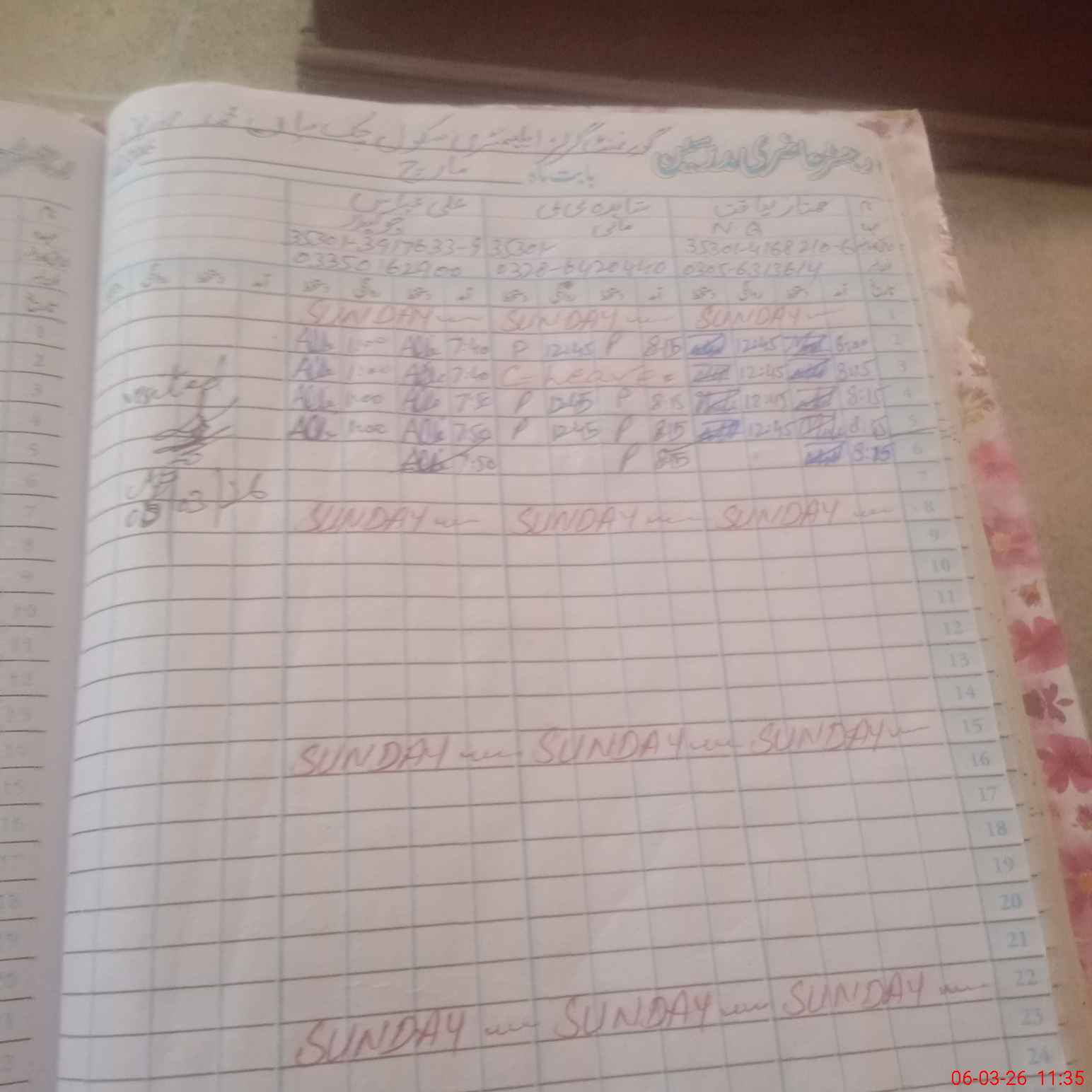 | CNIC | Full Name | Designation | R/C | Absence During Last Calender Month |