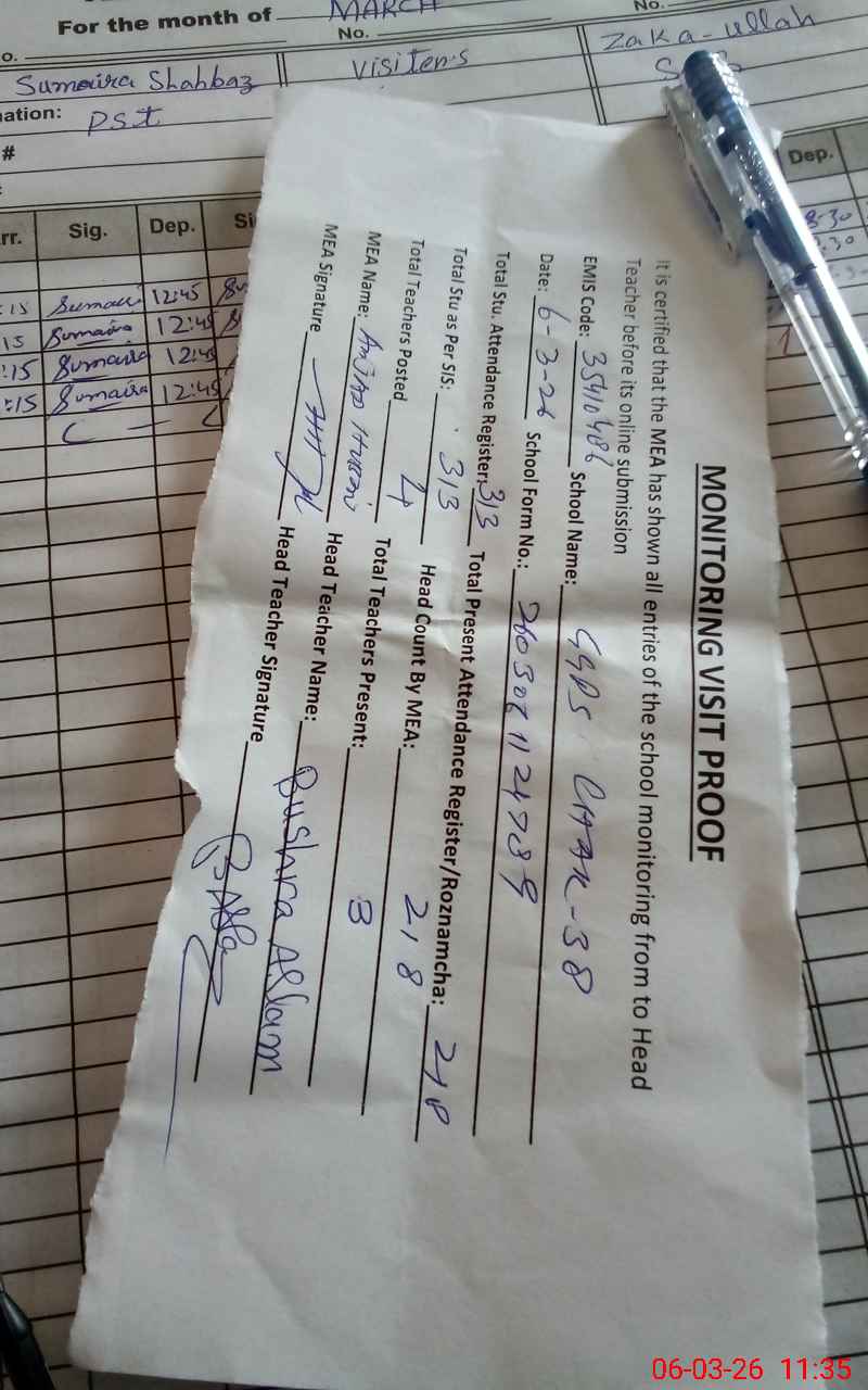 | Attendance Register | Head Teacher | MEA with School | Visit Proof |