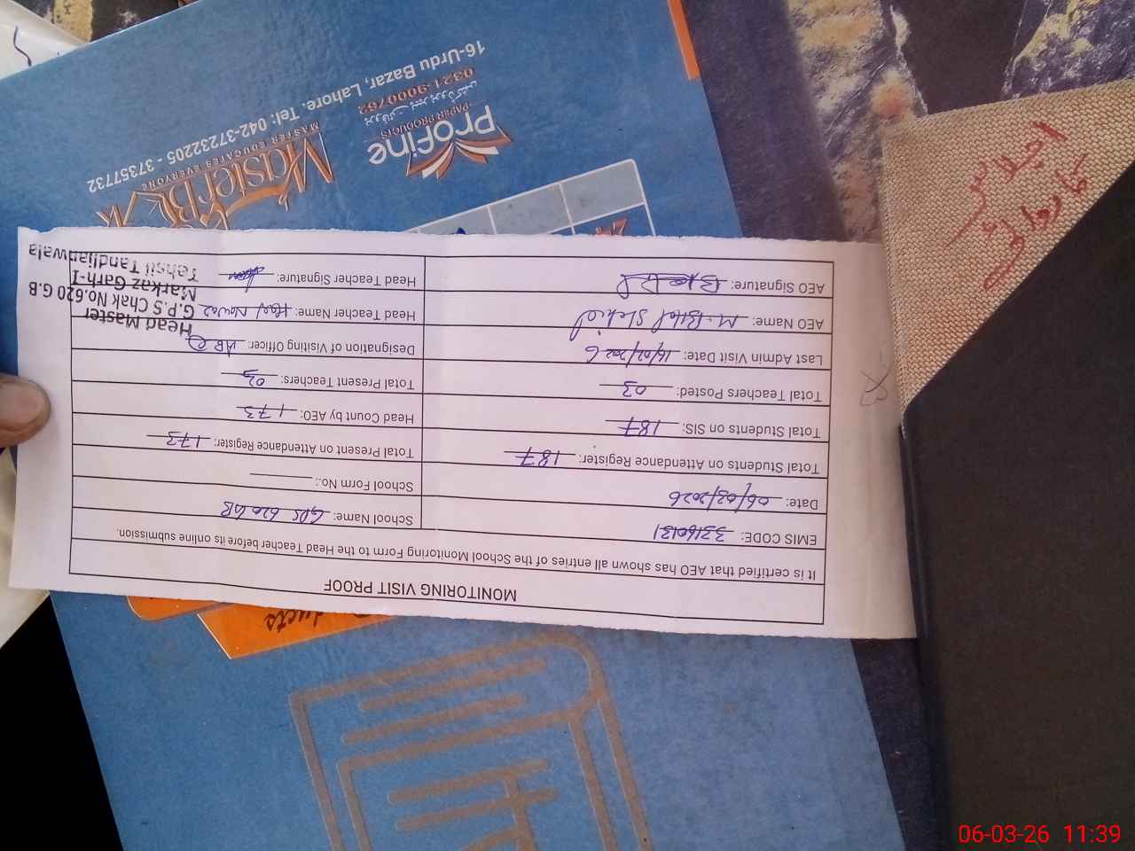 | Name: HA**** NA**** KH**** Designation: (School Headmaster's/Headmistress's) PST Phone/Cell Number: 03**** |