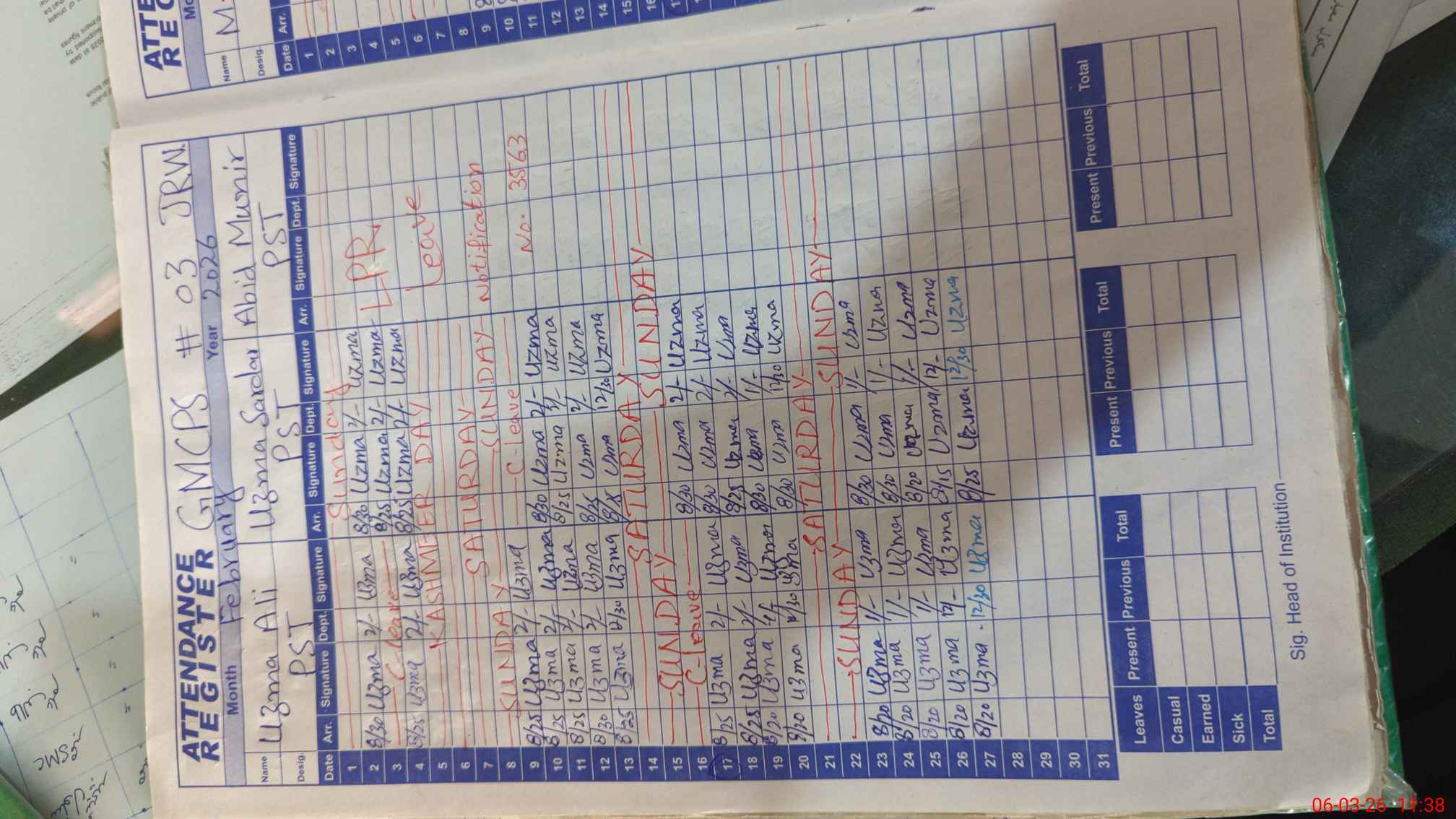 | Leave | Duty | Absent | Maternity | Medical | Ex- Pak |