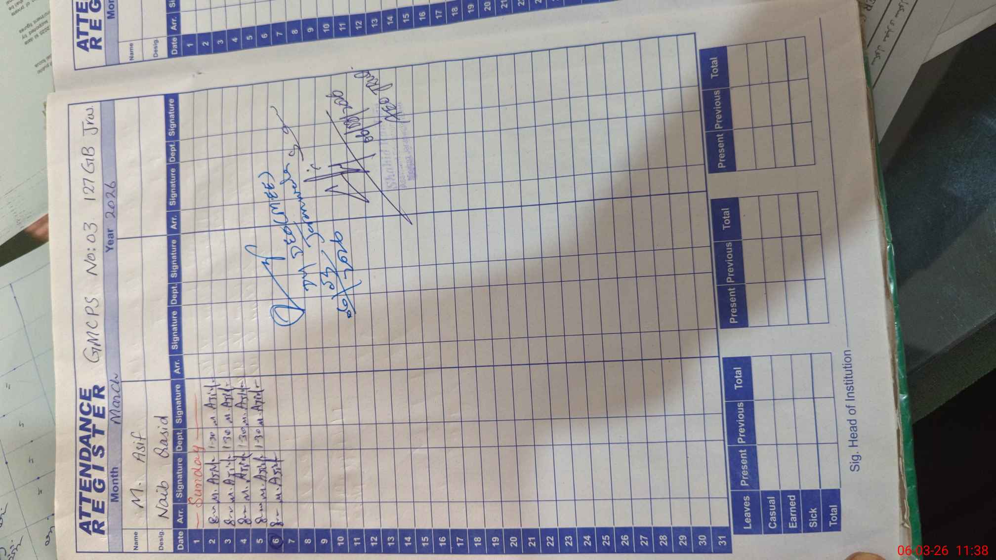 | CNIC | Full Name | Designation | R/C | Absence During Last Calender Month |